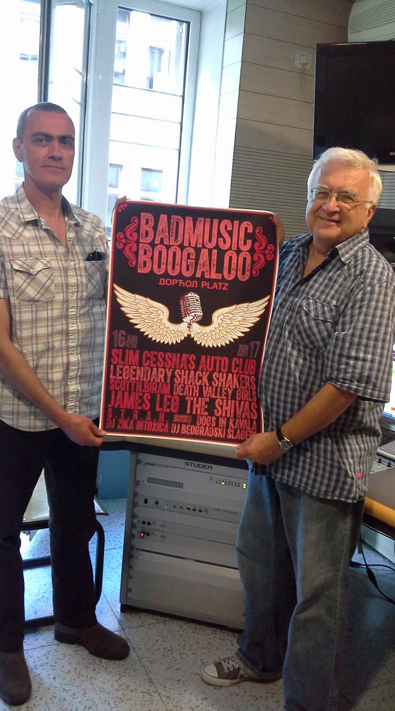 Here is Zikica Simic our famous music critic and radio DJ and Aleksandar Delibasic organizator of “Bad Music Boogaloo” festival holding the poster in Radio Belgrade 2 Studio.
